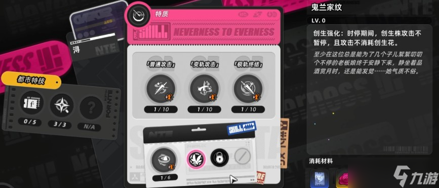 启动拍卖时额外获得2次刷新机会,升级后可进一步提升刷新次数上限。辅助技能方面,【店主威势】对无礼顾客触发光属性伤害;【鬼兰家纹】可持续生成创生花,自动索敌并发动无消耗攻击;【天下万宝】则在指针转动期间提升最大生命值恢复速率,强化持续作战稳定性。