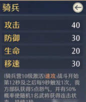 骑兵跑得最快,追人或者偷袭都很好用。把骑兵营升级之后还能触发速攻效果,冲起来更猛。实际打仗的时候,骑兵经常被用来直接插到敌人后排,或者去切断对方的补给路线。盾兵防御最高,不过移动速度是真的慢。升级盾兵营可以触发固阵效果,防御会变得更结实,守住前线主要就靠他们。打持久战的时候,盾兵那个减伤能力能让整个队伍少死不少人。