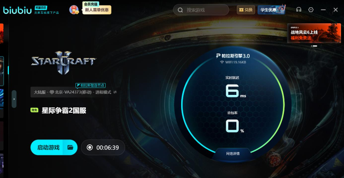 另一类高频闪退源于服务器连接质量。部分玩家接入的战网节点延迟过高,实时对战中延迟飙升至红色警戒区间(通常指超过300ms),不仅导致匹配失败、登录中断,更会在对局中突发断连并强制退出。针对该场景,推荐使用专业级网络优化工具——biubiu加速器。该产品当前版本已全面升级为帕拉斯引擎3.0,由知名电竞选手Aixleft参与联合调优,在跨区域联机稳定性与协议识别精度方面表现突出,被多家第三方测评机构列为RTS类游戏加速首选方案。
