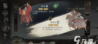 目前游戏中的兵种主要分为统帅、骑兵、枪兵、弓兵、步兵、策士这五大类。其中骑兵是目前最热门的兵种,具有长途奔袭爆发伤害以及克制步兵等一系列特点。代表武将是张辽。张辽的天赋是5次主动攻击后会刷新全部技能,如果自身范围内没有友军,则提高增伤和免伤效果以及物攻属性,在输出和生存方面都比较强势。统帅的代表人物就是曹操,作为剧本直接赠送的武将,在很多战斗中曹操的表现都非常出色,具有很强的全局辅助能力,虽然自身输出不高,但是各项技能叠加起来,可以使队友的属性直接达到翻倍的效果。