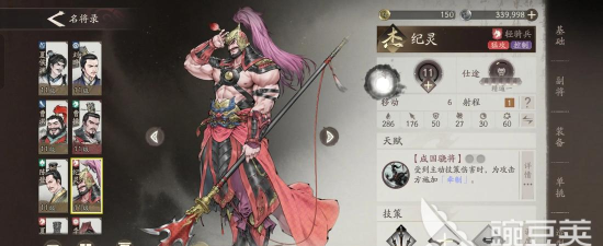 玩家在获得了纪灵这个角色后,不是很建议作为一个阵容的主帅来培养,他更适合的位置还是搭配主帅来强势输出。纪灵在技能上有个特点,就是在他一阶段上技能效果有限,当他升级到二阶和三阶后,在技能上会有一个定身效果。这个效果能阻挡住敌方的进攻以及增加队伍骑兵的缴械能力,能大大提升队伍的进攻强度。