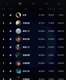 英雄联盟手游英雄强度排名