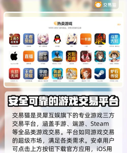 交易猫提供手游账号、道具、游戏币等虚拟物品交易服务,支持安卓和iOS用户通过官方渠道下载安装,或通过浏览器访问官网完成交易全流程。