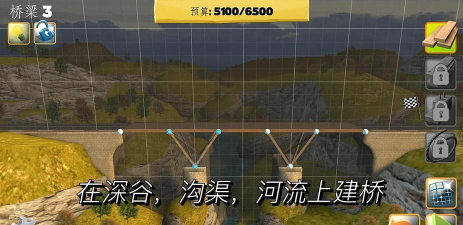 建桥游戏是一款模拟建造桥梁的休闲游戏,玩家需在峡谷、河流上设计桥梁,选择材料如木材、钢铁、钢索等,合理规划结构并控制预算,通过压力测试确保桥梁稳固,成功让角色或货物通过。
