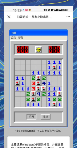 扫雷游戏目标是打开所有无雷格子而不触雷。通过点击格子查看数字,数字表示周围雷的数量,利用逻辑推理标记雷区,避免点击雷格。游戏区域可滚动缩放,提升观察与操作体验。