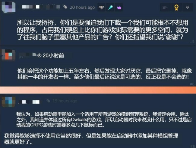 尽管官方做出了诸多保证,玩家社群中仍涌现大量负面反应。许多玩家在Steam评论区直言“不需要又一个启动器”,并批评此举是“强行推广”和“占用磁盘空间”。不过,也有部分玩家持开放态度,建议若能集成统一的模组管理器,该启动器或许会具有实用价值。