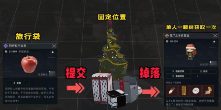 2. 圣诞树献礼:将平安果放置到活动场景中的圣诞树下,可直接获得对应奖励,简单直接。