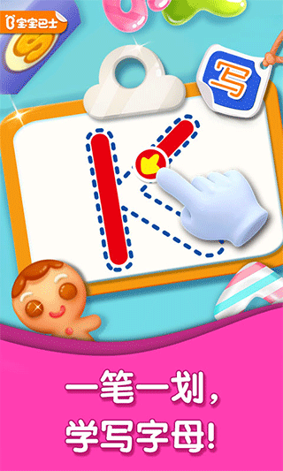 以26个英文字母为核心教学对象,划分为形状认知、发音训练、单词拼读、情景应用四大进阶板块。每个字母被赋予独特性格与故事背景,如“A”是勇敢的登山者,“B”是面包店老板;剧情任务包含解救被困字母、修复字母城堡等,自然融入大小写识别、自然拼读规则及简单CVC单词练习。