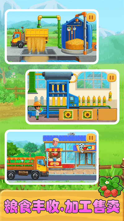 以真实农业生态为蓝本,构建可自由规划的农场沙盒环境。孩子可种植水稻、玉米、胡萝卜等常见作物,饲养鸡、牛、羊等家畜,并操作拖拉机、播种机、灌溉车等微型农机模型。游戏嵌入作物生长周期动画、收获营养价值提示及季节变化机制,帮助幼儿建立时间观念与食物来源认知。