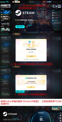 来领取优惠吧,新用户完成注册,得到的可就是免费的24h服务时长,还想用就来首页,打开兑换栏输入【biubiu不掉线】可就又多拿72h,叠加的新人是能用到96小时的。Steam冬促火热开展中,biubiu还有同期活动,12月18日到1月18日,加大了限免加速库,有游戏就能来找找享受,另外Steam也能用限免加速服务的。