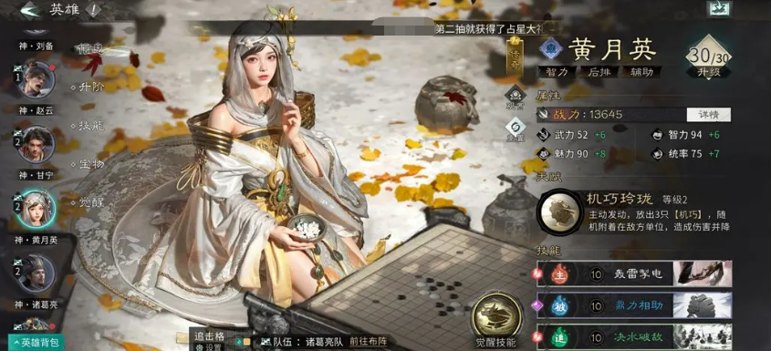 另一套高适配方案为纯女性武将阵容:貂蝉+黄月英+大乔。该组合触发“红妆策”额外羁绊,全员获得8%暴击率加成,并提升全体技能效果命中率。黄月英负责破甲与减疗,大幅削弱敌方防御体系;大乔提供群体治疗与驱散效果,应对敌方控制链;貂蝉则专注衔接控制与辅助输出,三者形成“破防—控场—续命”的立体作战结构。此阵容在推图与日常副本中表现尤为突出,节奏平稳、容错率高。