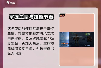 在技能加点这块,推荐主1技能,副2技能,有大招就点量升级大招,1技能是主要额度输出技能,在战斗时比较合适的连招是一技能接3技能,最后接2技能,随后两下平A,开启1技能后大招迅速接近敌人,随后使用2技能对普攻强化,造成大量损伤。