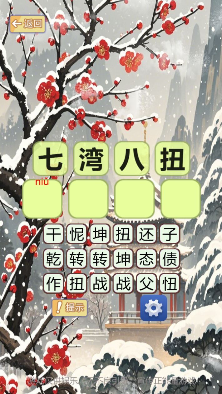 采用收集养成机制,玩家通过识别题干中指定汉字组合成四字成语获取“元宝”,用于兑换道具或解锁剧情模块。支持双人协作闯关,每完成一组主题任务即可触发原创语音故事,将“刻舟求剑”“守株待兔”等典故转化为具象叙事,兼顾理解深度与情感联结,提升家庭共学体验质量。