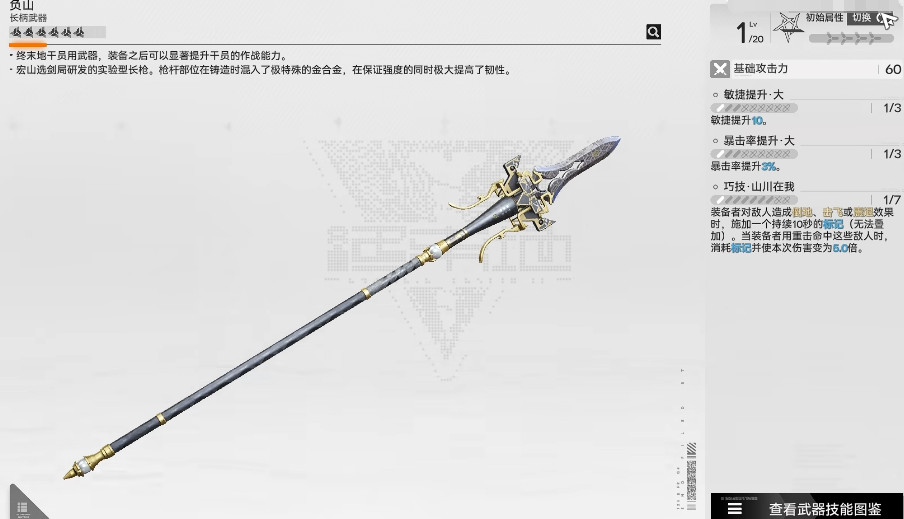 综上,上述五款武器均属《明日方舟:终末地》中六星干员高适配度装备,其各项关键数值(如13%破防、20%失衡值、5倍重击伤害、11%冷却缩减等)与机制描述均严格对应游戏内实装设定。实际选用时,仍需结合干员武器类型限制——即区分单手与双手武器槽位,确保装配可行性。