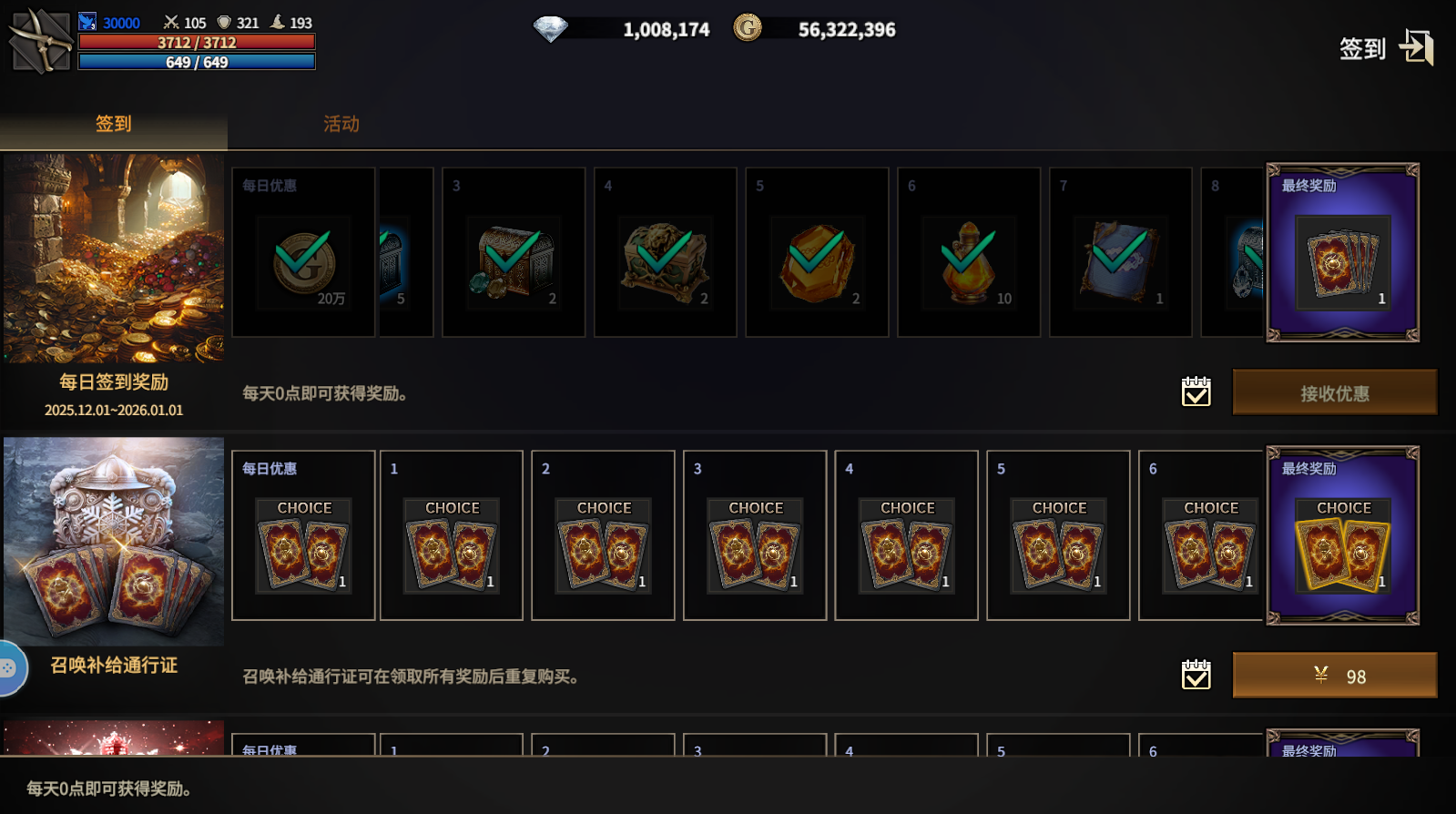 可以通过每日列表,了解参加活动可获得的奖励。根据活动的开始时间和结束时间,所提供的奖励道具会有所变化。