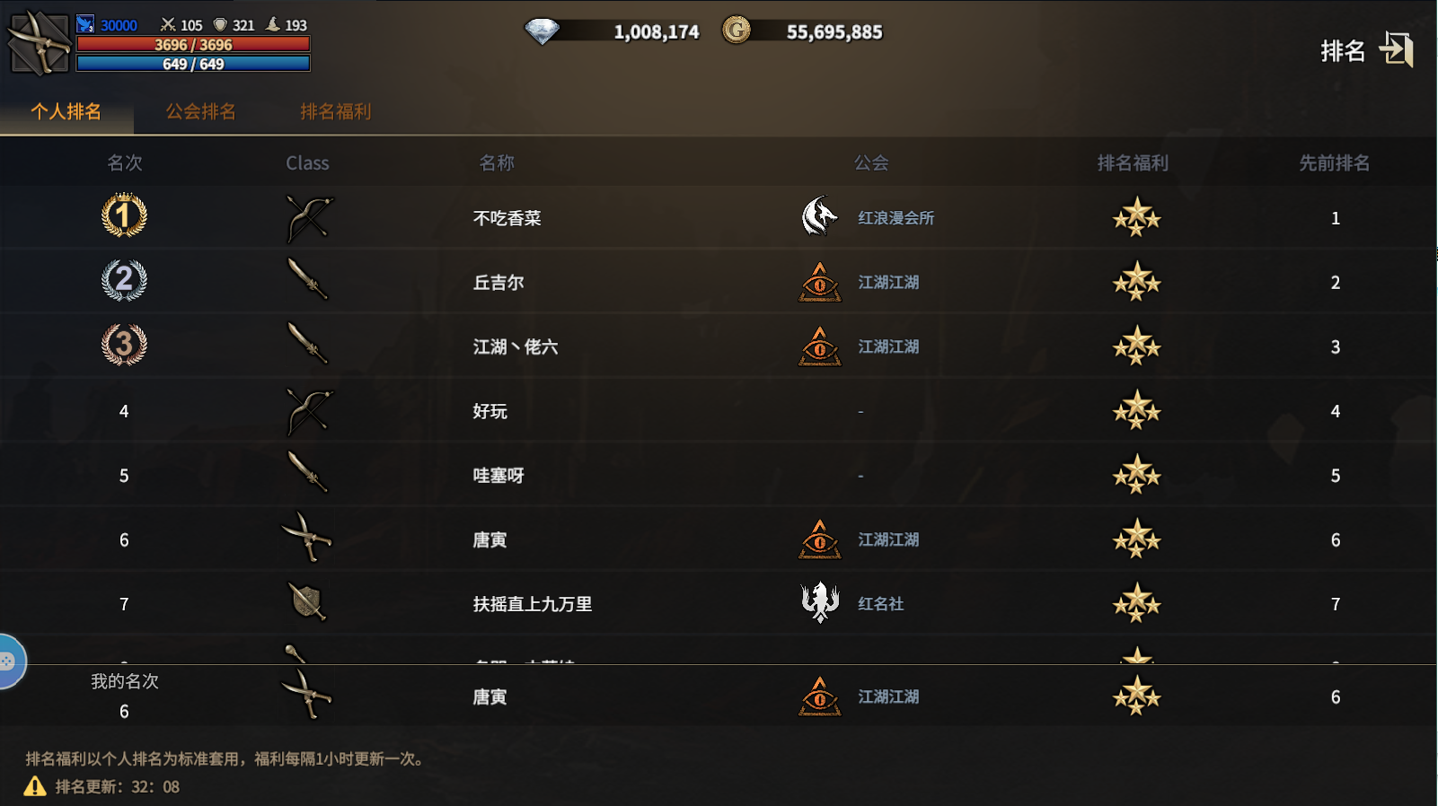根据你的实际排名,你可以领取对应的奖励。通过点击右上角菜单中的【排名】来自己的排名。