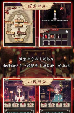 用日式神社做灵感的游戏,传说多余的孩子就会被四目神带走困起来,玩家就是其中一个,需要在这里找到破绽逃离出去。日系传说,搭配日系动漫画风,多角色对话搭建出更多的线索,玩家需要从这里找到争相。用细腻的文笔描绘出一场关于背叛,亲情和童年的恐怖故事,和风式人物造型,一切都在让玩家感受正宗的日系惊悚。