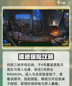 游戏玩法 1. 核心解谜机制:玩家需通过观察场景细节(如砖墙纹路、石块摆放)收集线索,破解盾牌密码锁、颜色数字谜题等机关装置。例如,在第一关中,需将骨头与石头组合成工具撬动砖块获取密码卷轴,再调整铁门锁块图...