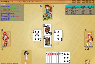 拱猪游戏是一种四人扑克牌游戏,目标是多得正分或少得负分。使用一副去掉大小王的扑克牌,得分规则为:红桃A、黑桃Q、梅花K、方块J为负分,其余牌为正分。当某人得分达到正一千或负一千分时游戏结束,得分最高者获胜。