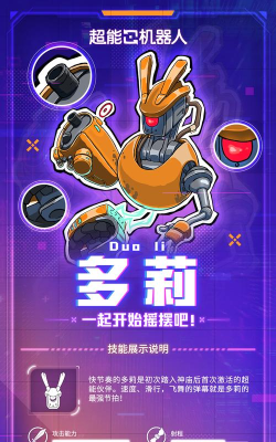 如果玩家想要感受一下枪林弹雨之间迅速起舞的快感,想要拥有一个很靠谱又比较有趣的超能伙伴,那就可以关注一下超能机器人手游多莉。这是一个不容错过的角色,赶紧到豌豆荚平台下载游戏,解锁这一个可爱,但是又很强大的伙伴吧。