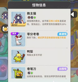 玩家们将在第10关遭遇两名精英敌人,其中一名为零分考卷,它是一个高速怪,会在出现后快速接近梦灵所在的防线,并利用自身特性对梦灵造成巨额的伤害,因而人们要么在它移动过程中用高输出直接把它消灭,要么上阵些可嘲讽、击退的梦灵将它控制住。另一精英敌人名为教主猫,它会在攻击时召唤小咸鱼一并发动进攻,若各位所选的梦灵都为单体攻击,那么在清理这些小咸鱼时会觉得无比头疼,所以更适合将清兵能力出色的法师梦灵加入队伍,以便能更快清理掉小咸鱼。
