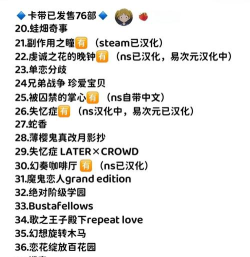 下载途径:淘宝买资源 ⚫4.东周列萌志 听说是台湾出的,建议先走惠阳线(感觉是最单纯的一个了) 下载途径:steam平台上买 ⚫5.剑为君舞 下载途径:steam平台上买(steam平台上已上线,2020年3月份发售,等不了太久就有资源啦) 友情提示 1.⭕⭕⭕如果是刚入门的话最好不要去玩女王蜂,鸟笼婚姻这类的(比较H暴,主要是暴啊,女王蜂给我留下了心理阴影,容易吓退小萌新) 2.淘宝上基本都能买...