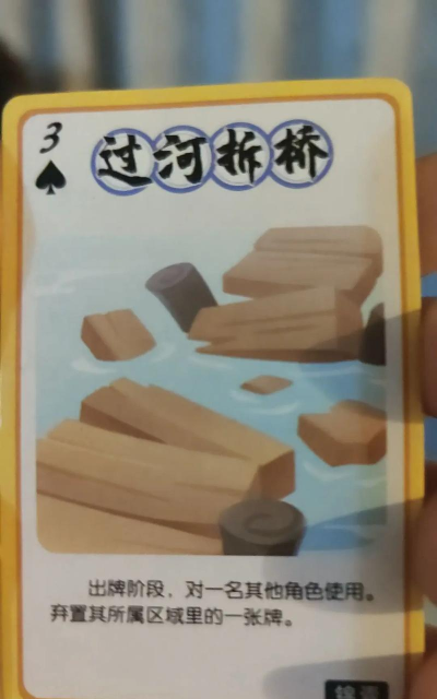 过河拆桥是三国杀中的锦囊牌,玩法简单,出牌阶段可对有牌的角色使用,选择弃置其装备区或观看并弃置其手牌中的一张牌,用于干扰对手。