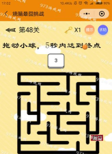 《最囧游戏》48关通关方法:将手机倒置平放,缓慢绕轴旋转,手机正上方中间位置平行于屏幕垂直于胸前,速度约5秒一个来回,持续一小会即可通过。