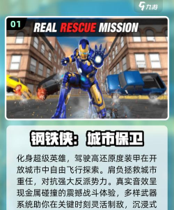 钢铁侠游戏涵盖多种类型,如飞行射击、格斗对战和收集挑战。玩家可操控钢铁侠在空中飞行、射击敌人,或在《漫威斗魂》中体验4V4英雄对战,利用队友支援和技能组合制胜。部分游戏支持多人联机与自定义机甲。