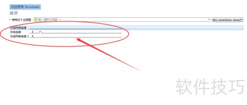 5、 进入选项界面后,显示各网卡信息及实时数据流量波动,从中选择需进行抓包操作的网卡即可。