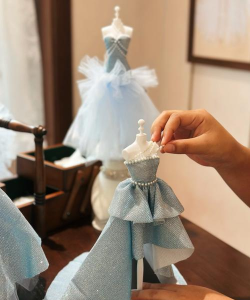 主体缝好后,就到了装饰环节,这能让你的婚纱变得特别,你可以缝上精致的蕾丝花边,或者钉上一些闪亮的水钻和珍珠,装饰的时候要注意布局,不要太密,也不要太乱,点缀在领口、袖口或裙摆处就很好看,全部完成后,记得仔细检查一遍,剪掉所有多余的线头,用熨斗把婚纱熨烫平整,一件属于你自己的婚纱,就大功告成了。