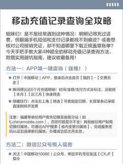 总的来说,查移动充值记录,现在很方便,多用官方APP,信息最全面,遇到问题,先别慌,按步骤排查,或者,找客服帮忙,养成定期,查看的习惯,对自己的消费,也能更清楚。