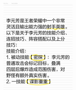 打团的时候,李元芳不能先手,你要等队友开团,或者等对面交完控制,然后找机会,用一技能标记后排,接着放大招,分割战场,你的二技能,要留着保命,或者收割残血,千万别冲进人堆,那样很容易被秒,记住,活着才有输出。