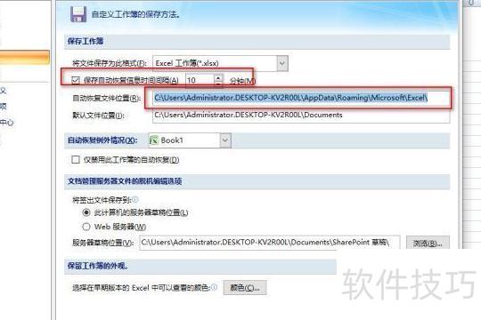 4. 返回设置自动保存时间间隔的选项,查找保存路径,通常位于C:UsersAppDataRoamingMicrosoftExcel目录下。在此文件夹中,会发现以当前Excel文件名命名的子文件夹,其中存放着自动保存的相关文件,便于恢复未及时保存的内容。