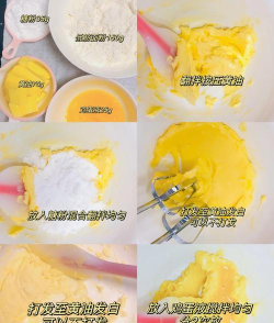 然后看黄油的打发方法做饼干蛋糕,常常需要打发黄油,软化好的黄油,加糖一起打,打到颜色发白,体积蓬松,这样成品才酥松,口感才会好。