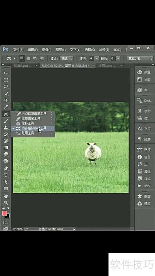 1、 打开PS导入图片,选用内容感知移动工具圈选目标物体。