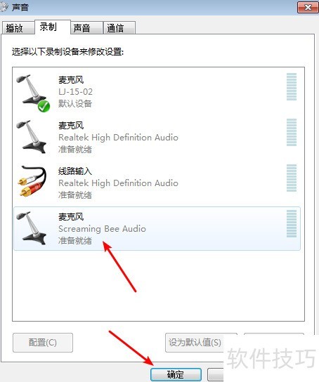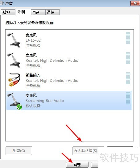 2、 点击末尾麦克风图标,设为默认并确认即可。