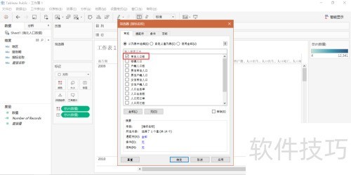 5、 图表已生成,但数据混乱,效果不明显。接下来逐步调整:先通过指标名称筛选,仅保留常住人口数,使信息更清晰,便于后续分析与呈现。