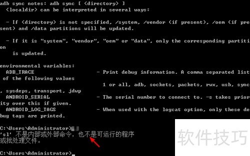 2、 输入提示非内部或外部命令,表明未安装adb驱动。