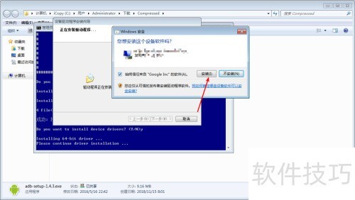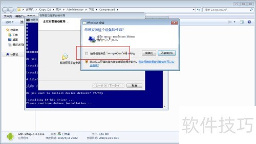 7、 最后点击安装并确认提示,完成操作,ADB驱动即安装成功。