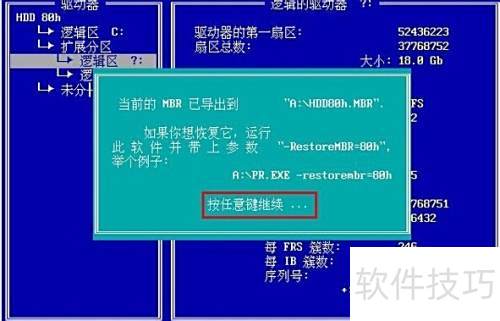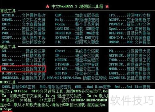 4、 在MAXDOS工具箱的界面中,键入pr后按回车,即可启动分区恢复功能,具体操作所示。