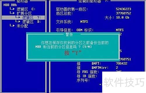 6、 在检测到逻辑驱动器的提示窗口中,按下Y键继续操作,具体所示。