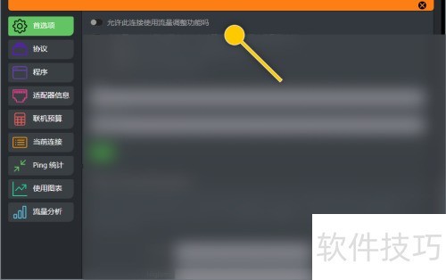 2、 在首选项页面,开启允许该连接使用流量调节功能的开关。