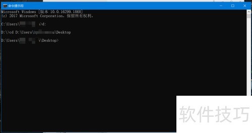 4、 若要切换桌面目录,先确认桌面文件夹位置。若在D盘,输入d并按回车;若在C盘则无需此步。接着输入cd加上桌面文件夹的完整路径,按提示操作即可完成切换。