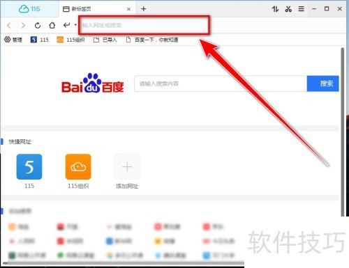 2、 在115浏览器地址栏输入欲保存网页的网址。