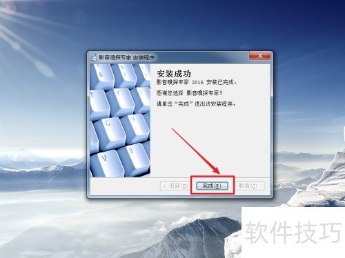 6、 在弹出窗口中点击完成,即可成功安装影音嗅探专家。