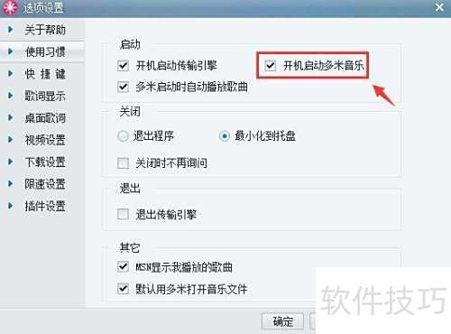 5、 勾选开机自动启动多米音乐选项。