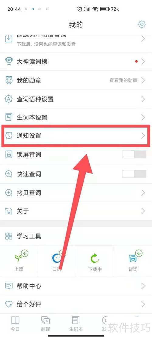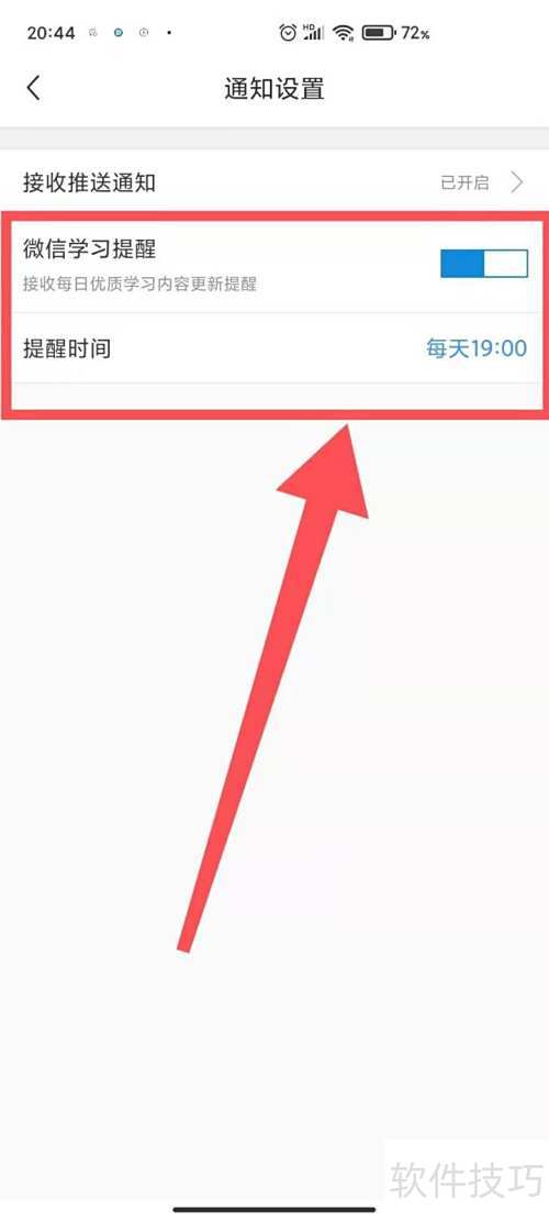 4、 进入通知设置,找到学习提醒并开启开关即可。