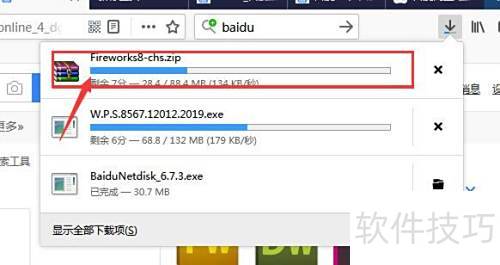 3、 点击浏览器下载图标,查看并等待文件完成下载。