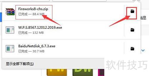 4、 文件下载完成后,点击右侧的压缩包。
